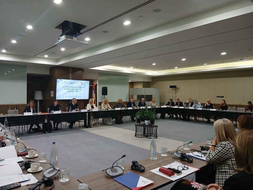 Регионална Конференција, одржана 7. новембра 2025. године у Београду у организацији Управног суда на тему: „Утицај реформских процеса на ефикасност заштите у управном спору“, обухватила је две сесије. Прву сесију на тему: „Организација и надлежност“ модерирао је проф. др Добросав Миловановић, професор Правног факултета Универзитета у Београду, у оквиру које су излагања имали: председник Управног суда Републике Србије, судија Радојка Маринковић, председник Високог управног суда Републике Хрватске, судија Инга Везмар Барлек (online), председник Управног одељења Врховног суда Републике Словеније, судија Петер Голоб, председник Управног суда Црне Горе, судија Миодраг Пешић и професор Правног факултета Универзитета у Скопљу и судија Уставног суда Северне Македоније др Ана Павловска Данева. Другу сесију под називом: „Управни спор“ модерирао је проф. др Зоран Лончар, редовни професор Правног факултета Универзитета у Новом Саду, у оквиру које су излагања имали: заменик председника Управног суда Републике Србије, судија Гордана Богдановић, декан Правног факултета Универзитета у Ријеци, проф. др Дарио Ђерђа, (online), заменик председника Управног суда Републике Словеније судија Мојца Муха, судија Управног суда Црне Горе Владимир Гојачанин и председник Управног суда Северне Македоније, судија Бурим Сејдини (online). Након радног дела Регионалне конференције уследила је дискусија међу учесницима и представљање закључака у погледу реформских процеса у упоредно правним системима, које можете прочитати овде.